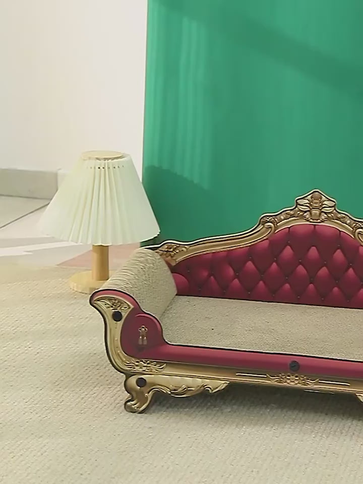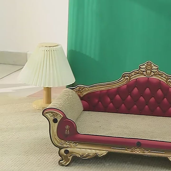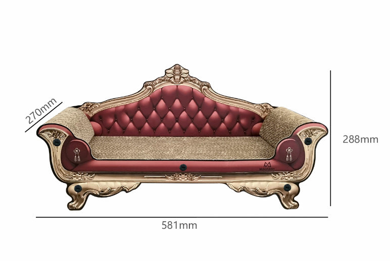 Elegante sofá rascador que combina comodidad y estilo, ideal para que tu mascota pequeña descanse y afile sus uñas. Su diseño clásico con detalles tallados lo hace perfecto para cualquier hogar, ¿Buscas un espacio lujoso para tu compañero? En Furever te cubrimos.