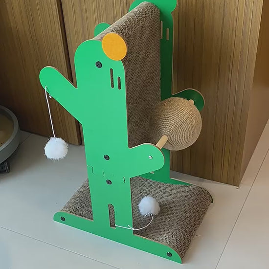 Divertido rascador para gatos con forma de cactus, ideal para que tu mascota se entretenga y cuide sus uñas.